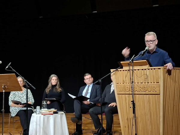 Síðastliðinn sunnudag var haldið málþing í Miðgarði í tilefni þess að 70 ár eru liðin síðan fyrsta ljóðbók Skagfirðingsins Hannesar Péturssonar kom út. Fjölmenni sótti málþingið sem var á vegum Sögufélags Skagfirðinga. Héraðsbókasafn Skagfirðinga tók þátt í viðburðinum með útstillingu á bókum Hannesar og söluborði með aukaeintökum af bókamarkaði safnsins.