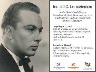 Um næstu helgi, sem jafnframt markar upphaf Sæluviku, verður þess minnst í Safnahúsi Skagfirðinga að þann 18. apríl verða liðin 100 ár frá fæðingu Indriða G. Þorsteinssonar. Verður boðið upp á ferð um æsku- og sagnaslóðir skáldsins. Einnig verður haldið málþing og sýning í Safnahúsinu og kvikmyndin Land og synir sýnd í Bifröst.